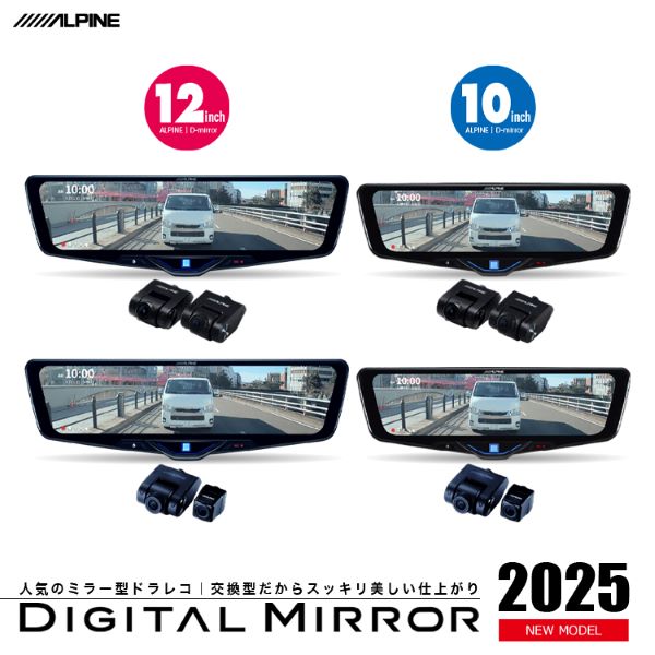 多くのルームミラーは9インチや10インチが多めですが、アルパインは10インチに加えて12インチのモニターを選択することができます
