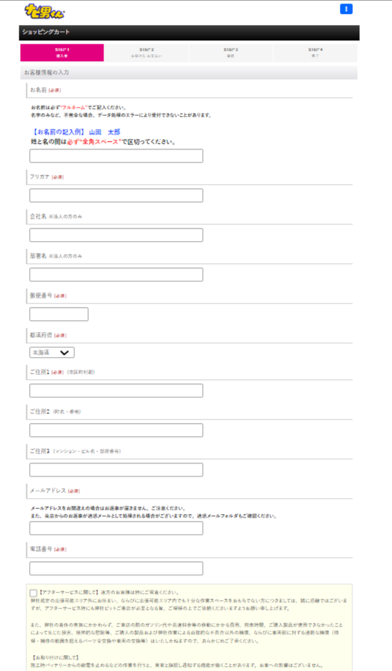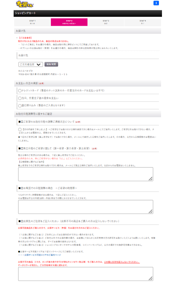 Step2 お客様情報と支払方法を選択後、注文